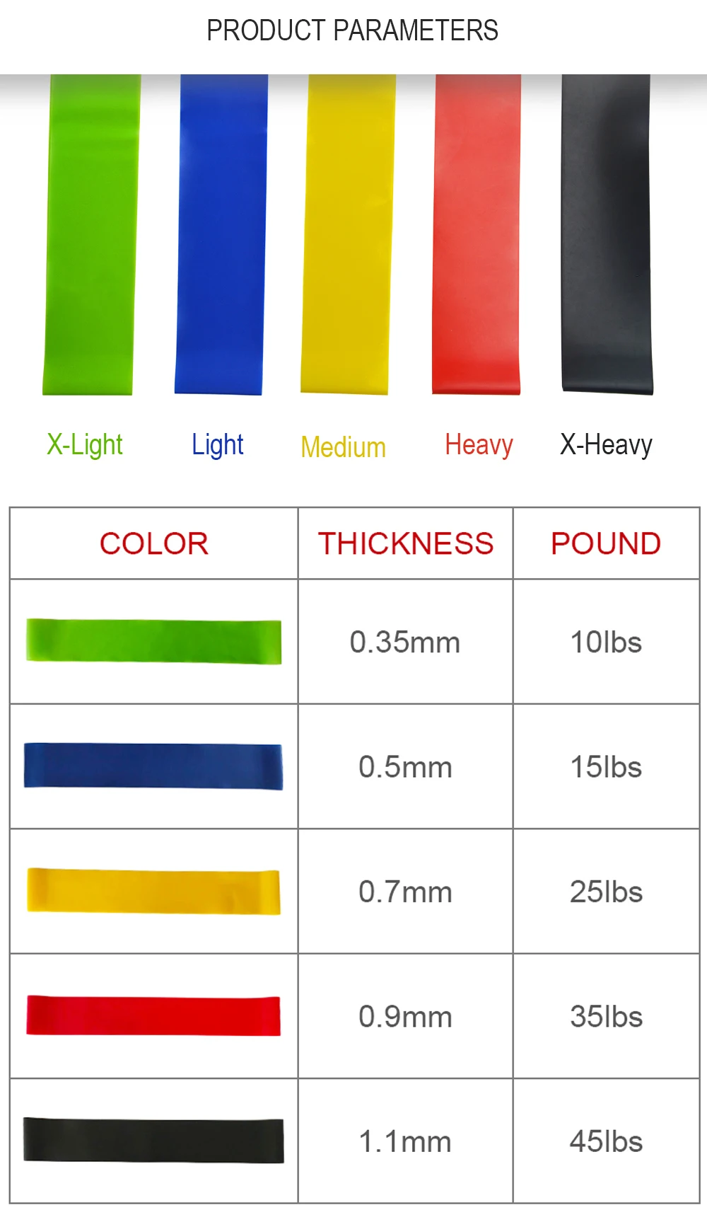| Black | 600mm*50mm*1.1mm(40lbs) |